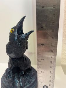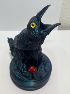 Measuring approximately 3" wide x 3" deep x 5 1/4" tall (with base), this stunning collectible dice roller is a must-have for spooky fans of tabletop gaming, and it will look just as great sitting on your shelf as it does on your gaming table.