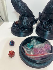 1 savesLevel up your game nights with this Raven & Skull mini dice roller! Features a twist-off base for dice storage, and includes 2 full sets of 7 mini (10mm) dice and an extra bonus d20!! Dice set colors will vary.